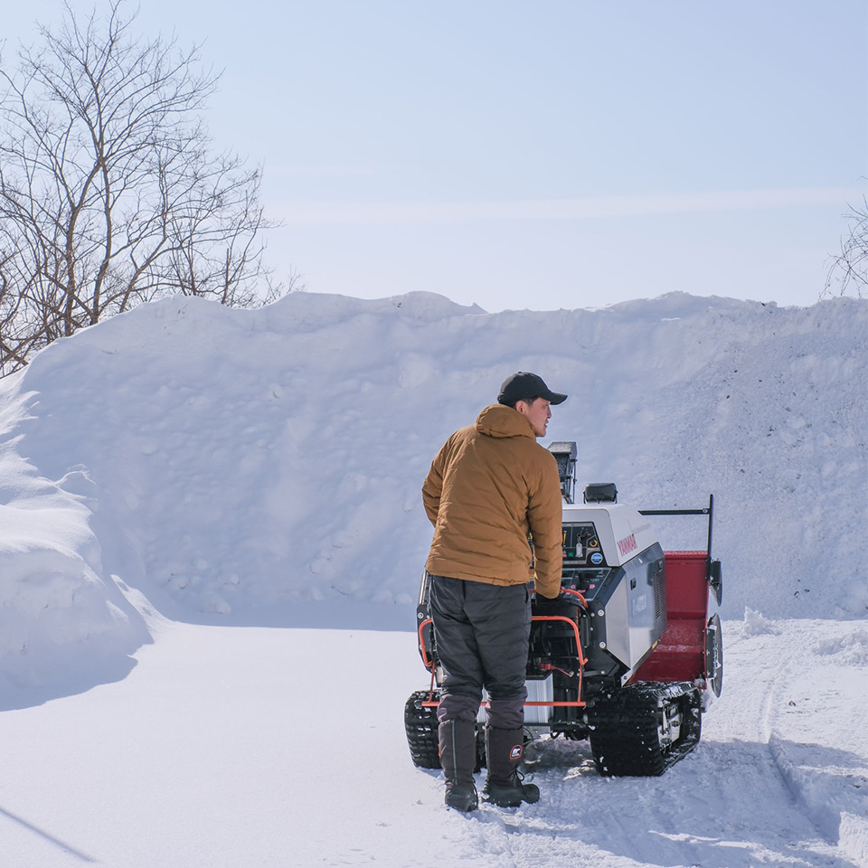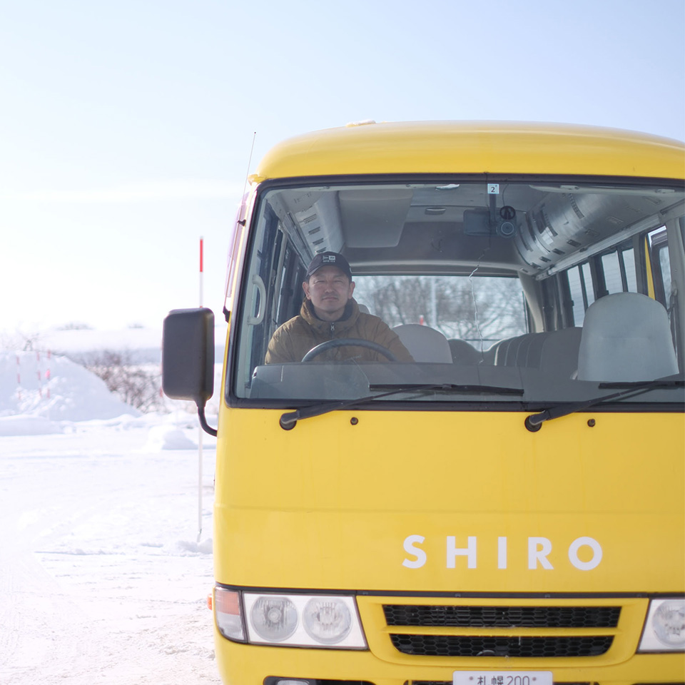 バスの運転手、と紹介しましたが、彼の仕事はそれだけではありません。おおよそ1 時間に1 本のシャトルバスの運行時間の合間を縫って、施設内の「SHIRO CAFE」では皿を洗い、リノベーションが進む砂川パークホテルでは夜勤および解体前の片付けを、SHIROが管理する森では草刈りをして、雪が降ったら広大な工場内の敷地を除雪するなど、幅広い業務を担っています。「みんなの工場」で働くスタッフが何か困ったときに、真っ先に頭に浮かぶのが小林の顔。みんなに頼られる存在です。