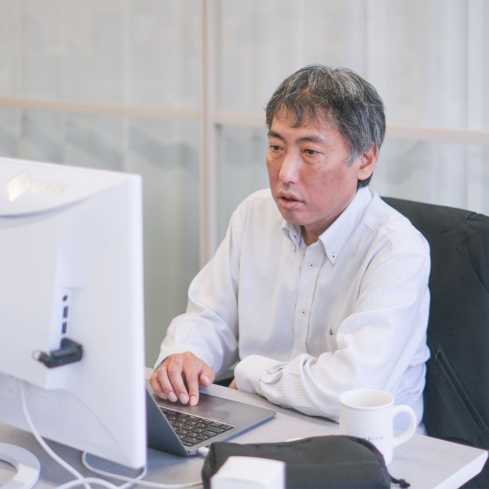 2021年10月、西野高生は既存スタッフの紹介で、SHIROに入社しました。前職は派遣のシステムエンジニア。控えめな性格で、多くを語るタイプではありませんが、着実に結果を積み重ね、経営層からも絶対的な信頼を寄せられています。その理由は明確です。SHIROがどんな会社なのかを理解し、その思想を無理なく動くシステムに落とし込めるから。